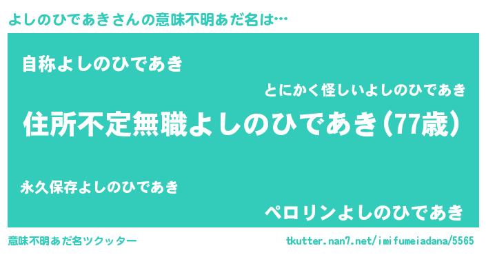 | 女子向けラノベタイトル風あだ名 | 『悪役よしのひであきに転生したようですが、知った事ではありません』 |