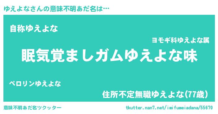 | 男性向けラノベタイトル風あだ名 | 『おまえをオタクにしてやるから、俺をゆえよなにしてくれ! 』 |