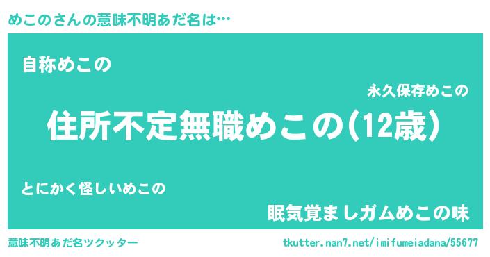 | ヘコむあだ名 | 『めこの(笑)』『めこぷりん』 |