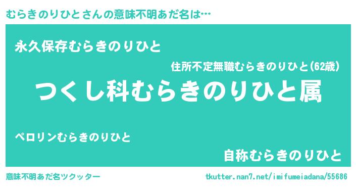 | 男性向けラノベタイトル風あだ名 | 『むらきのりひと~年齢イコール彼女いない歴の魔法使い~』 |