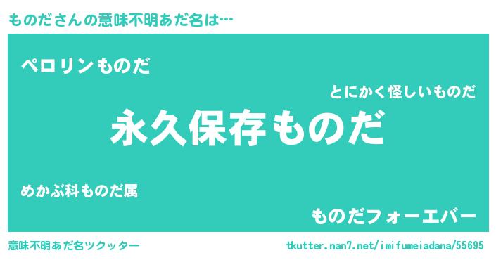 | 男性向けラノベタイトル風あだ名 | 『ものだという概念が存在しない退屈な世界 』 |
