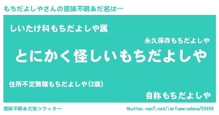 | 男性向けラノベタイトル風あだ名 | 『もちだよしやの嫁は女の子じゃないと思った?』 |