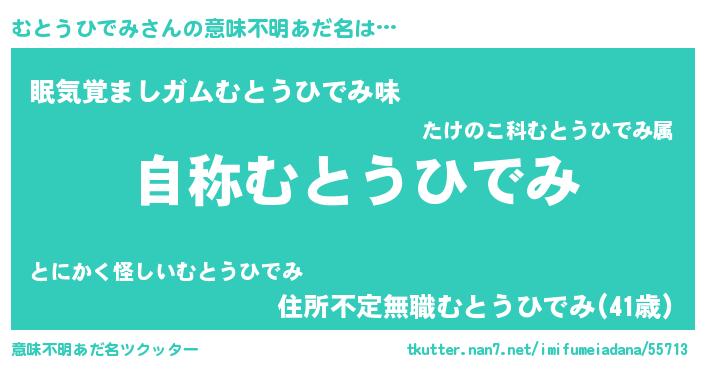 | 男性向けラノベタイトル風あだ名 | 『Re:むとうひでみから始める異世界生活』 |