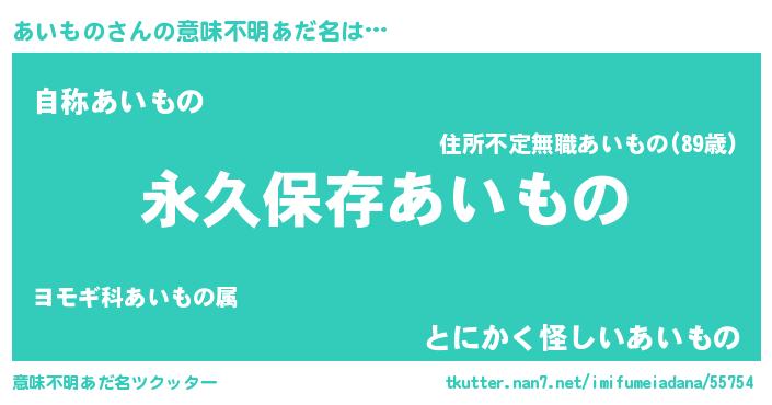| ヒーロー風カッコイイあだ名 | 『ネオアイモノ』『最強戦士アイモノ』 |