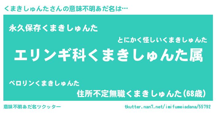 | ヘコむあだ名 | 『くまきしゅんた(震え声)』『くまっちょ』 |