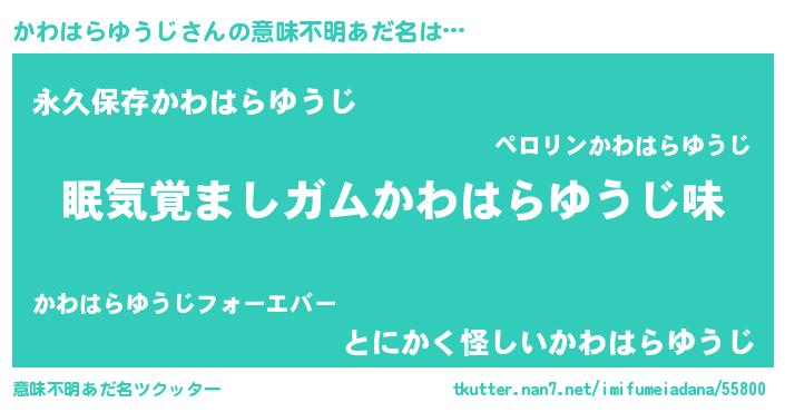 | 男性向けラノベタイトル風あだ名 | 『ノーゲーム・ノーカワハラユウジ』 |