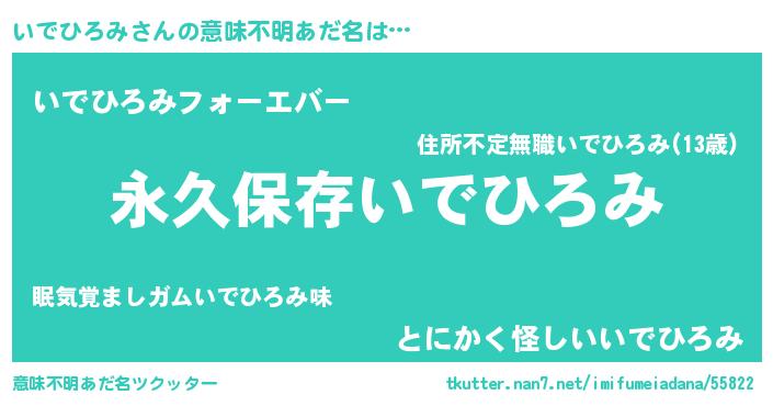| 男性向けラノベタイトル風あだ名 | 『いでひろみという概念が存在しない退屈な世界 』 |