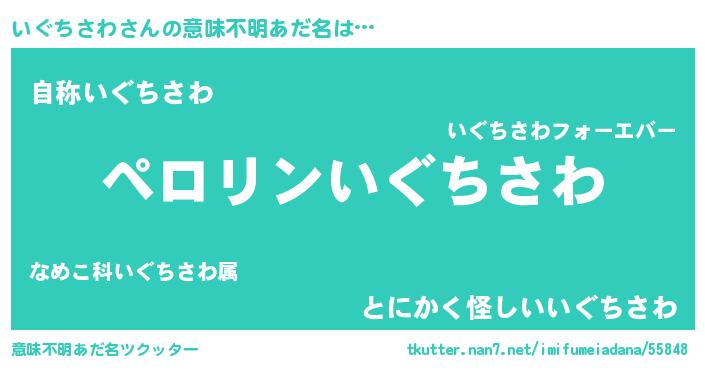 | 男性向けラノベタイトル風あだ名 | 『いぐちさわに滅ぼされるだけの簡単なお仕事です』 |