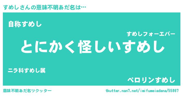 | 胡散臭い通販商品みたいなあだ名 | 『信頼と実績のサプリメント…その名も「すめし」』 |