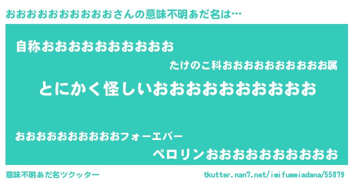 | 男性向けラノベタイトル風あだ名 | 『おおおおおおおおおおの嫁は女の子じゃないと思った?』 |