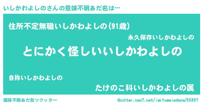 | 男性向けラノベタイトル風あだ名 | 『いしかわよしのの嫁は女の子じゃないと思った?』 |