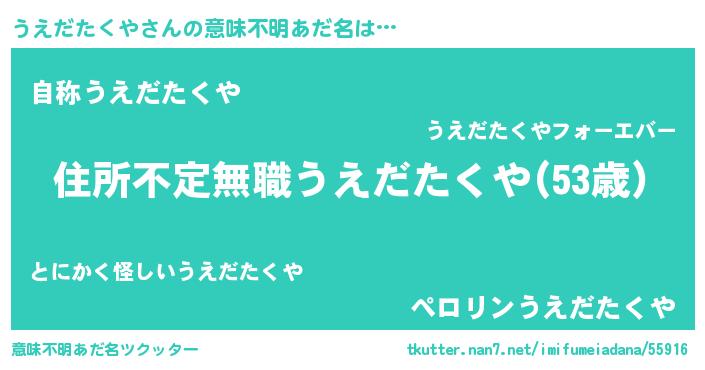 | 肩書あだ名 | 『うえだたくや教官』『うえだたくや総統』 |