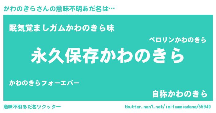| 胡散臭い通販商品みたいなあだ名 | 『前代未聞の健康食品…その名も「かわのきら」』 |