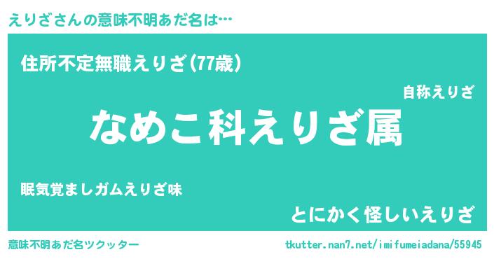 | 女子向けラノベタイトル風あだ名 | 『えりざの玉の輿計画!』『闇のえりざ』 |