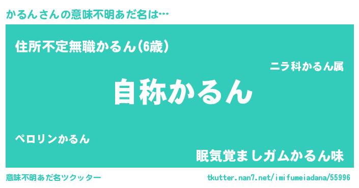 | 男性向けラノベタイトル風あだ名 | 『Re:かるんから始める異世界生活』 |
