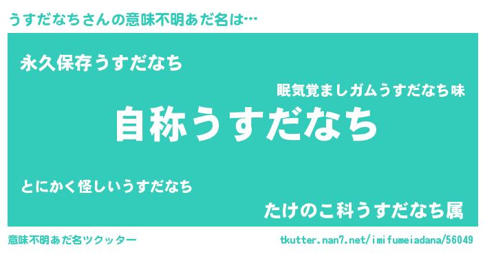 | 男性向けラノベタイトル風あだ名 | 『Re:うすだなちから始める異世界生活』 |