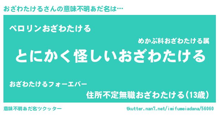 | 女子向けラノベタイトル風あだ名 | 『おざわたける様がみてる』 |