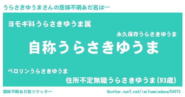 | ヘコむあだ名 | 『うらさきゆうま(震え声)』『うらっふぃ~』 |