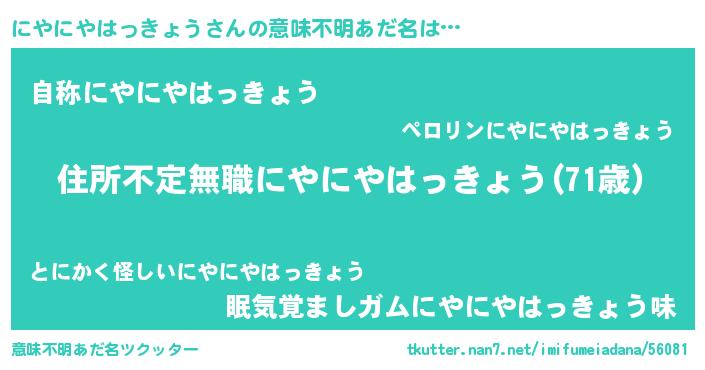 | 男性向けラノベタイトル風あだ名 | 『この素晴らしい世界ににやにやはっきょうを!』 |