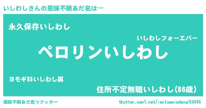 | ヒーロー風カッコイイあだ名 | 『スーパーイシワシ』『ネオイシワシ』 |