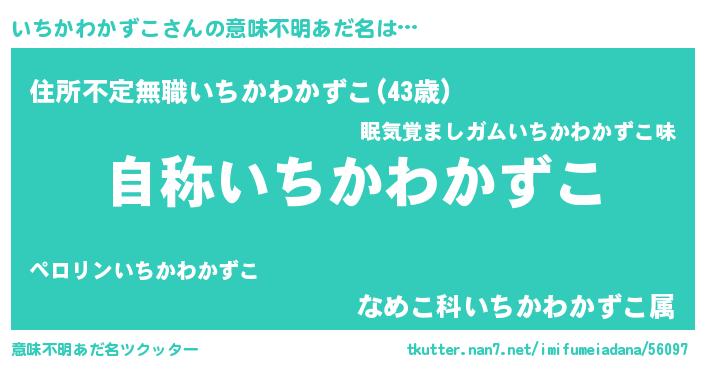 | 男性向けラノベタイトル風あだ名 | 『Re:いちかわかずこから始める異世界生活』 |