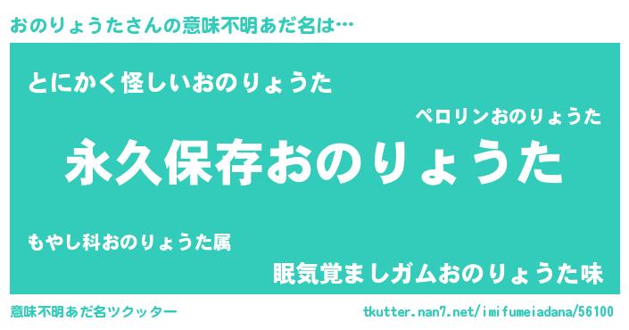 | 男性向けラノベタイトル風あだ名 | 『はたらくおのりょうたさま!』 |