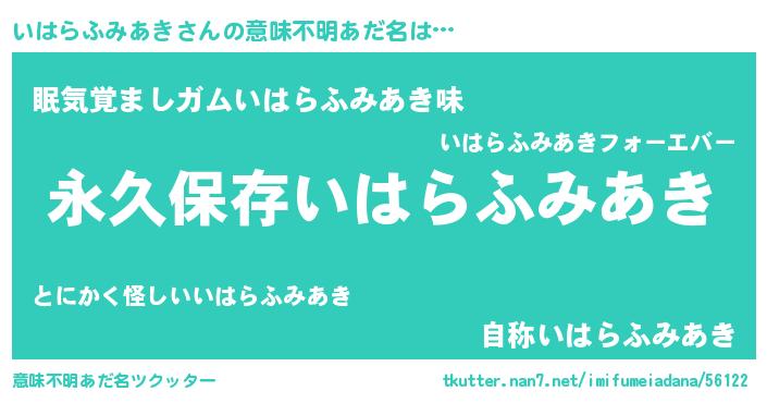 | ヘコむあだ名 | 『いはらふみあき(爆)』『酢こんぶ』 |
