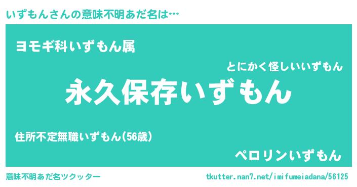 | 男性向けラノベタイトル風あだ名 | 『いずもんという概念が存在しない退屈な世界 』 |