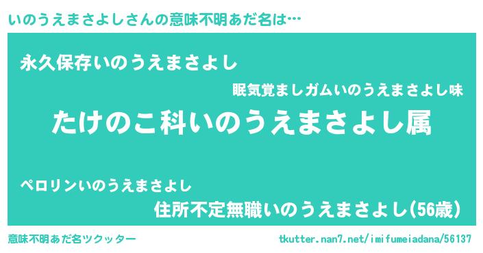| 胡散臭い通販商品みたいなあだ名 | 『来世でも幸せになれる水素水…その名も「いのうえまさよし」』 |