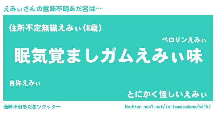 | 男性向けラノベタイトル風あだ名 | 『うちのえみぃが世界を掌握している!』 |