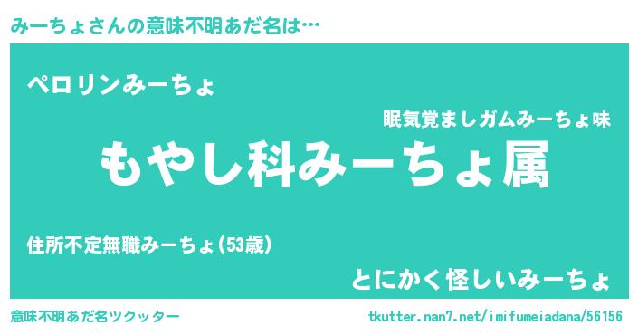 | 男性向けラノベタイトル風あだ名 | 『転生したらみーちょだった件』 |