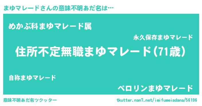 | 男性向けラノベタイトル風あだ名 | 『はたらくまゆマレードさま!』 |