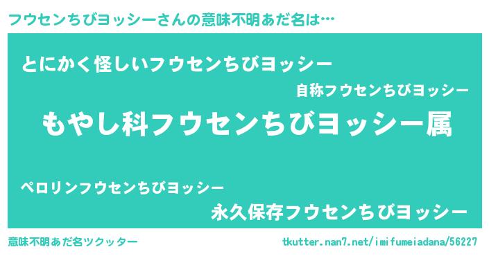| 女子向けラノベタイトル風あだ名 | 『フウセンちびヨッシーの玉の輿計画!』 |