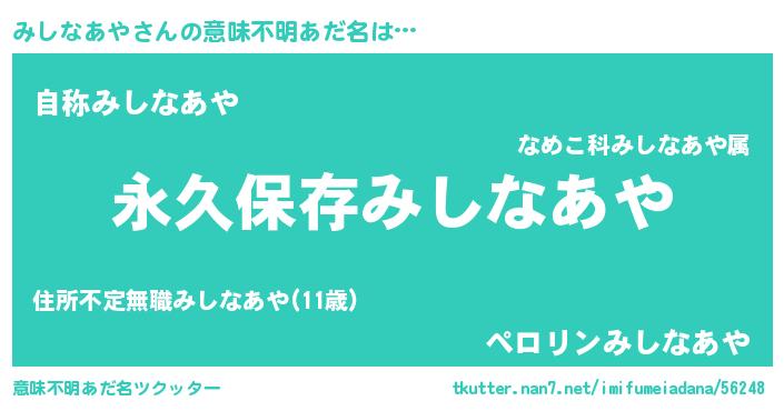 | ヘコむあだ名 | 『みしなあや(苦笑)』『みしにー』 |