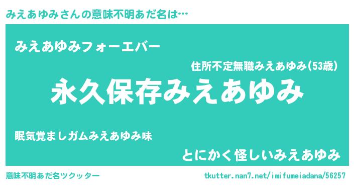 | 欧米人風あだ名 | 『ダルビッシュみえあゆみ』 |