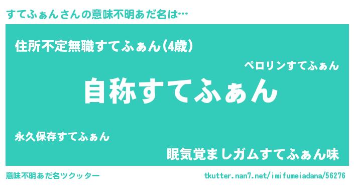 | 男性向けラノベタイトル風あだ名 | 『Re:すてふぁんから始める異世界生活』 |