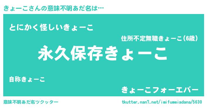 | ヘコむあだ名 | 『きょーこ(小並感)』『きょぷりん』 |