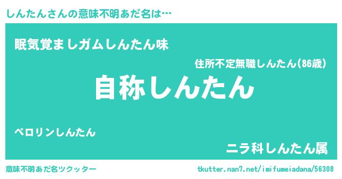 | 男性向けラノベタイトル風あだ名 | 『Re:しんたんから始める異世界生活』 |
