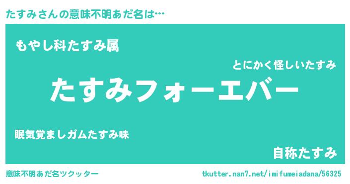 | 欧米人風あだ名 | 『アンジェラ・たすみ』『ウサインたすみ』 |
