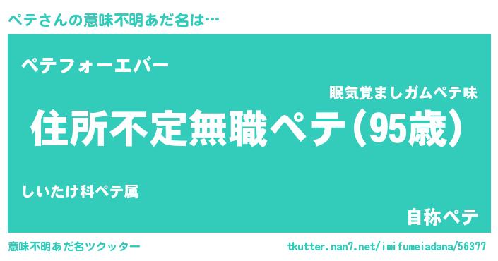 | 男性向けラノベタイトル風あだ名 | 『この素晴らしい世界にペテを!』 |