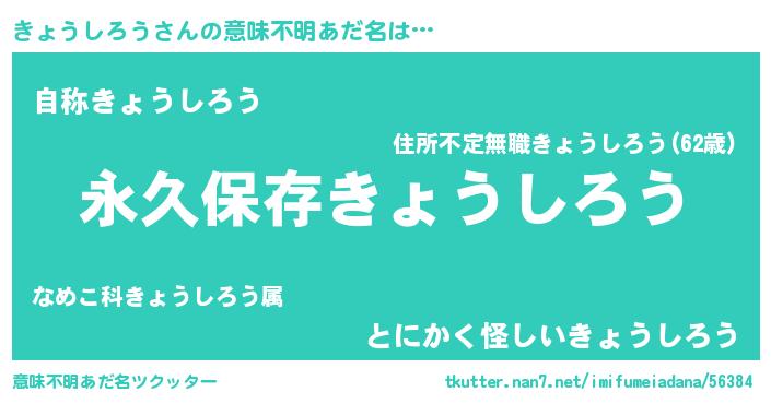 | 男性向けラノベタイトル風あだ名 | 『きょうしろうという概念が存在しない退屈な世界 』 |
