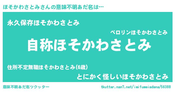 | 肩書あだ名 | 『ほそかわさとみ閣下』 |
