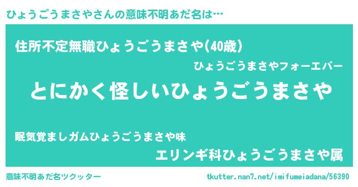 | 女子向けラノベタイトル風あだ名 | 『ひょうごうまさやは平凡を望む』 |
