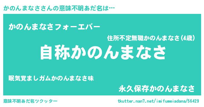 | 男性向けラノベタイトル風あだ名 | 『Re:かのんまなさから始める異世界生活』 |