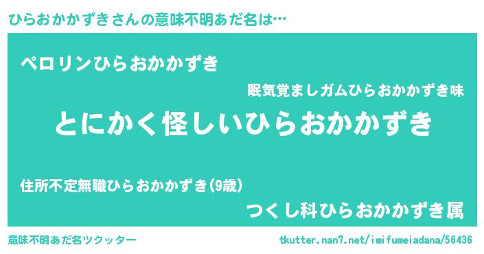 | ポケモン風あだ名 | 『ヒラゴンZ』『ヒヒラオカカズキ』 |