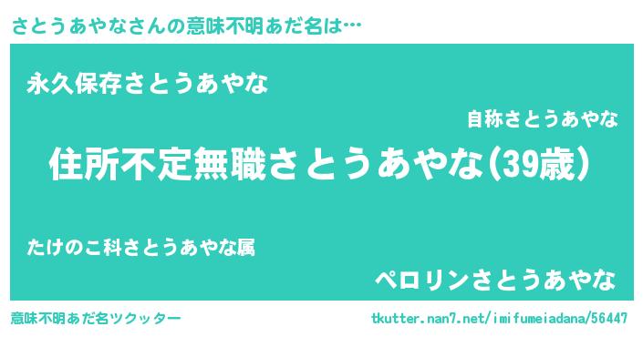 | 伝説のあだ名 | 『古文書に記された暗殺者さとうあやな』 |