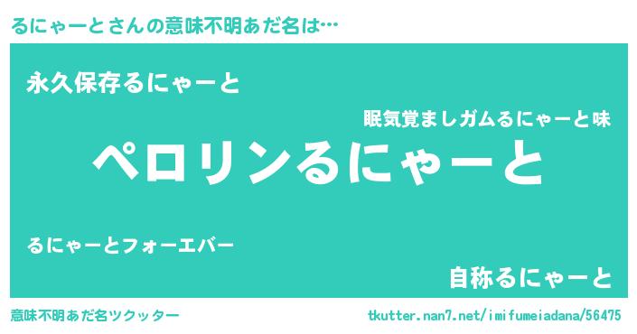| 男性向けラノベタイトル風あだ名 | 『るにゃーとの憂鬱』 |