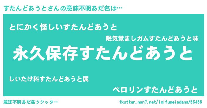 | ヘコむあだ名 | 『すたんどあうと(震え声)』『すたお』 |