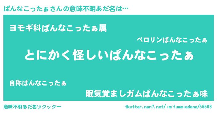 | 女子向けラノベタイトル風あだ名 | 『ぱんなこったぁは平凡を望む』 |