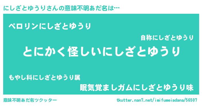 | 男性向けラノベタイトル風あだ名 | 『ダンジョンににしざとゆうりを求めるのは間違っているだろうか』 |
